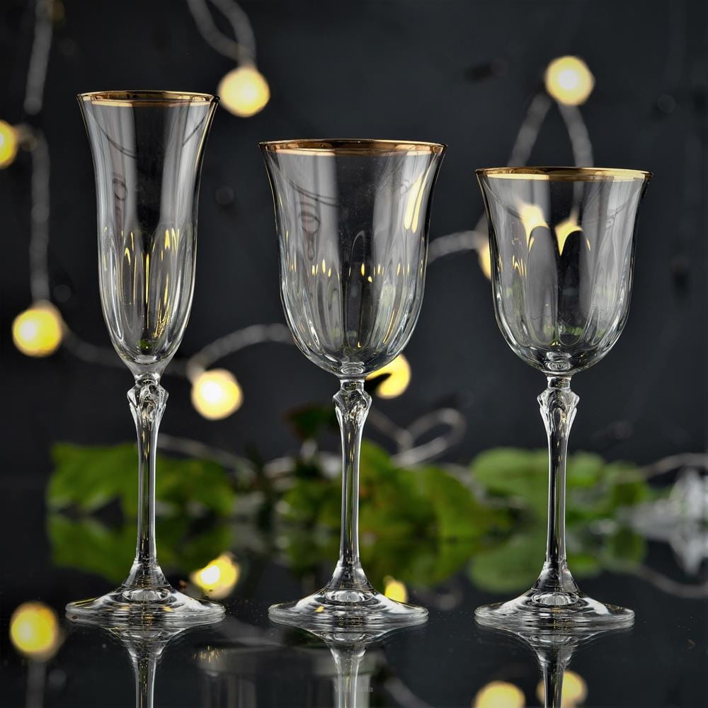 Zestaw kieliszków do wina czerwonego ze złotym zdobieniem - LUDOVICA Gold.