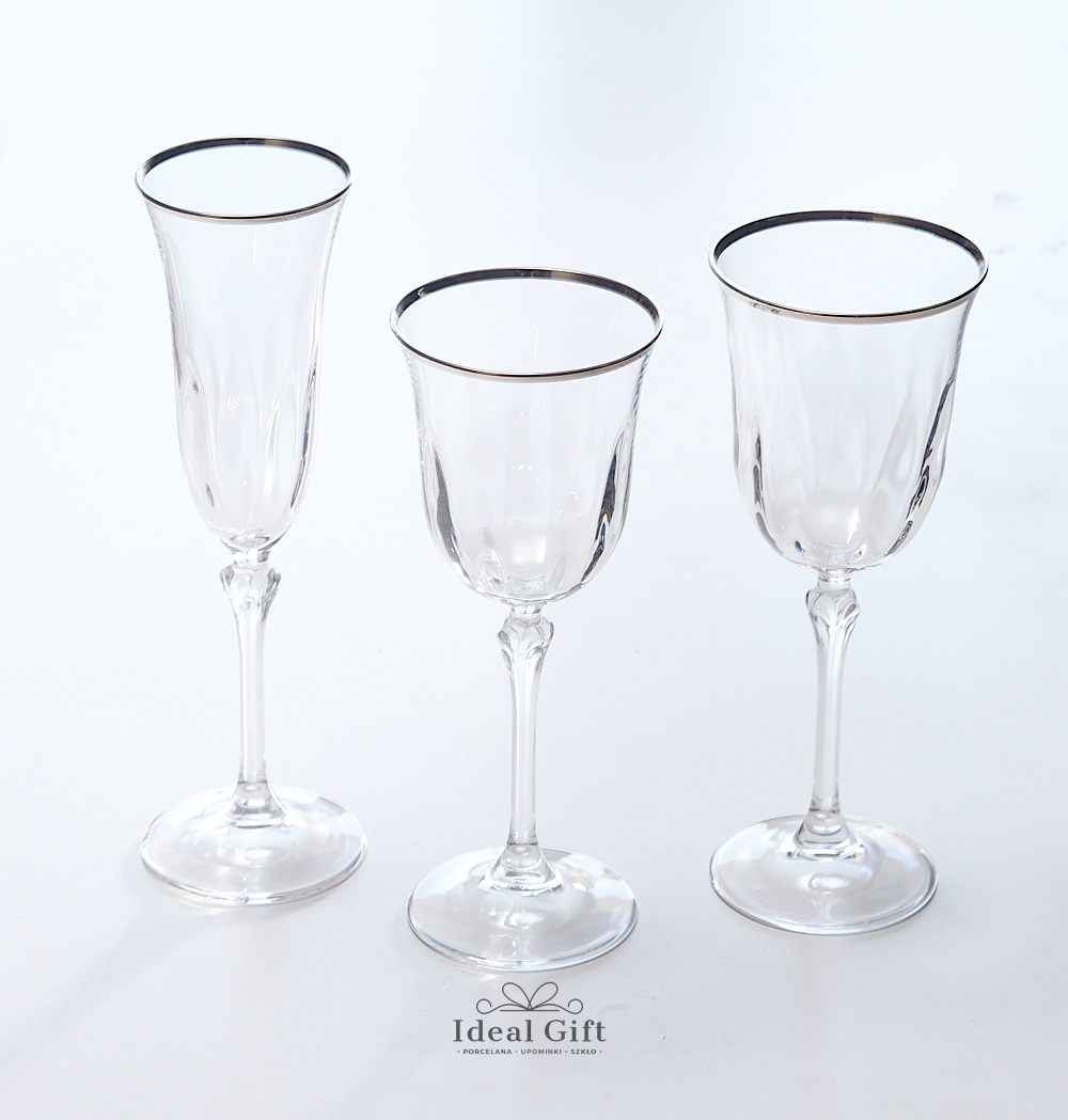 Kieliszki LUDOVICA Platino doskonale uzupełnią zastawę stołową w stylu klasycznym. Dopełnią również aranżacje w stylu glamour. Komplet kieliszków zawiera 18 elementów - po 6 kieliszków: do wina czerwonego/wody, wina białego i szampana.