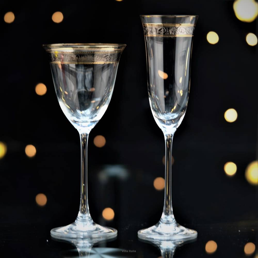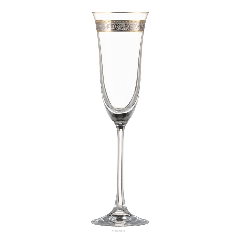 Kieliszki Villa Italia - Renesans - Zestaw kieliszków do szampana złoty pasek Komplet 6 szt 150 ml