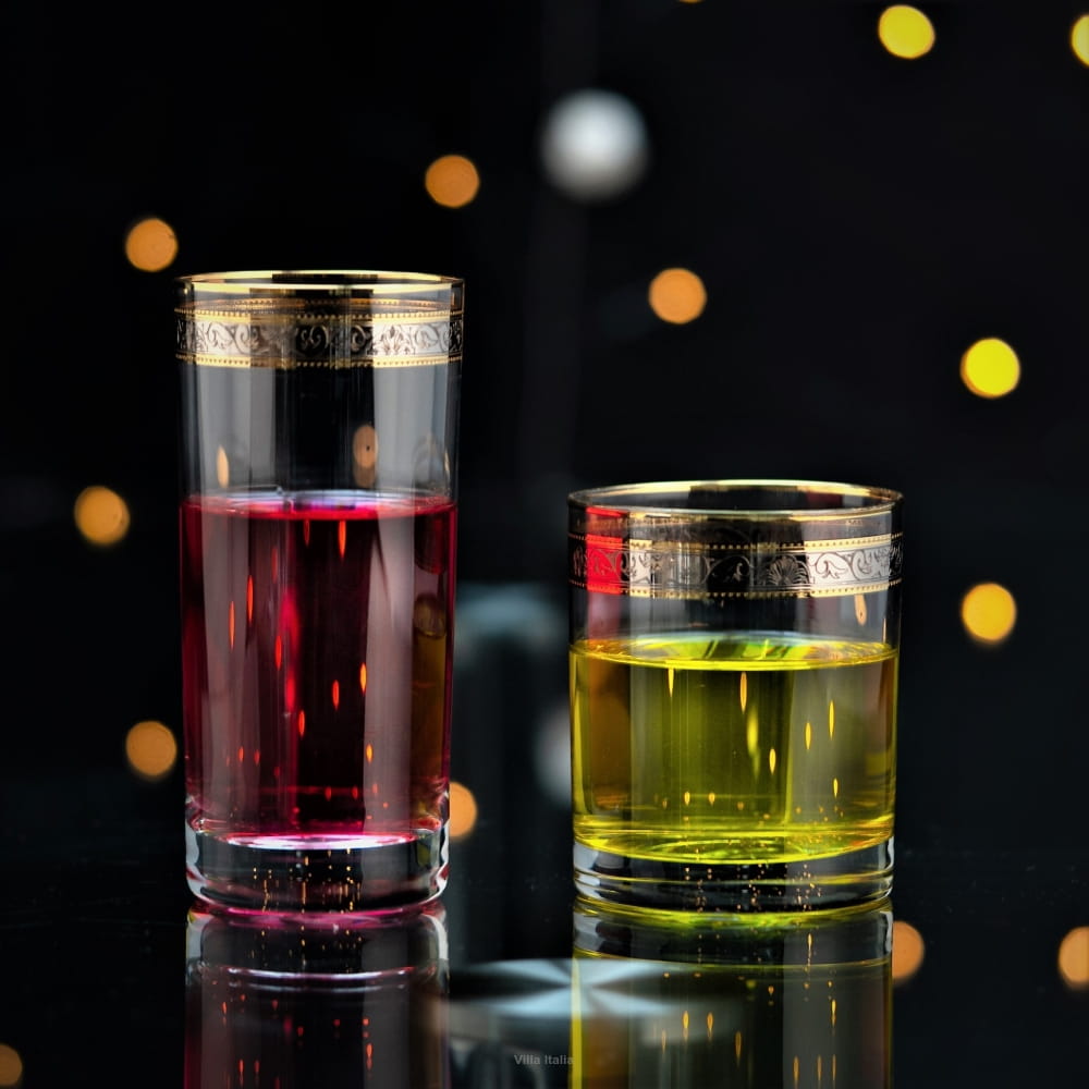 Kieliszki Villa Italia - Renesans - Zestaw szklanek wysokich złoty pasek Komplet 6 szt 360 ml
