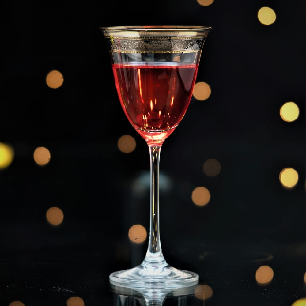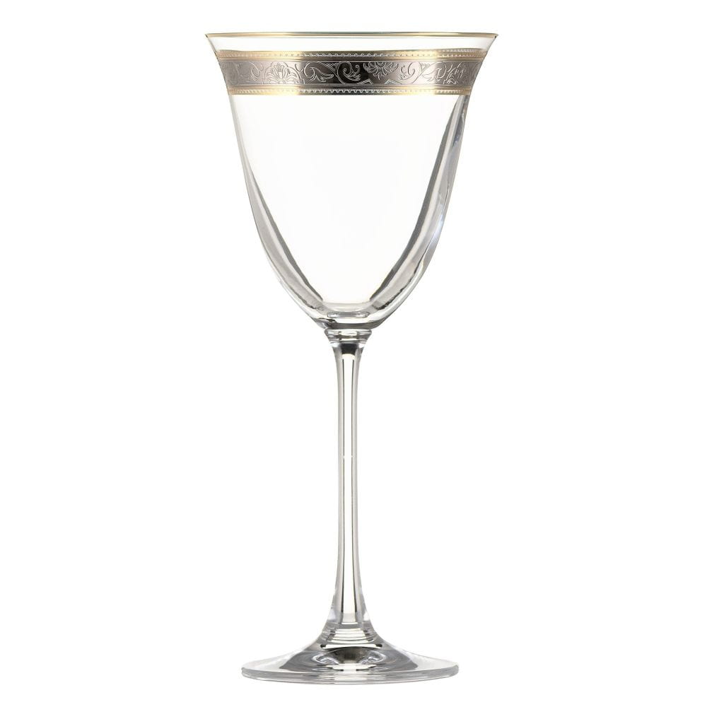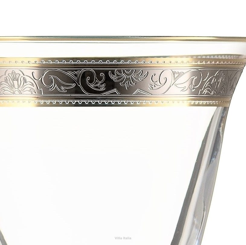 Górną krawędź kieliszków pokrywają ręcznie malowane złote obwódki, pomiędzy którymi został naniesiony efektowny ornament - taki sam jak na porcelanie. Zastawa doskonała na uroczyste i wykwintne okazje.