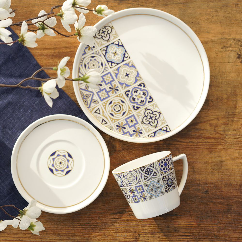 AZULEA to kolekcja porcelany inspirowana mozaikami azulejo. To element dekoracyjny w formie barwnych płytek ceramicznych wywodzący się z Półwyspu Iberyjskiego. Zastawa wykonana została z porcelany o wysokiej gramaturze typu "new bone china". Dekoracje naniesiono z wykorzystaniem kalki o charakterze reliefowym, z delikatnie wypukłymi zdobieniami.