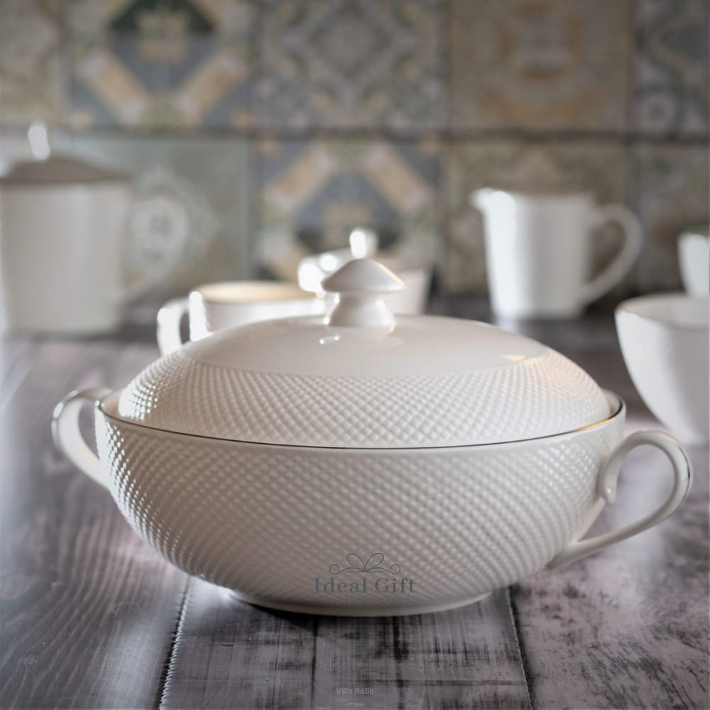 Porcelana Villa Italia - Bari Platin - Serwis obiadowo kawowy na 12 osób z wazą