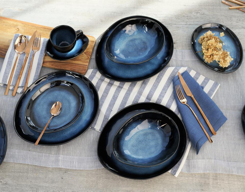 Naczynia wykończone reaktywnym szkliwem mogą być używane także do dekoracji wnętrza. Planujesz nowoczesną aranżację stołu? Poszukujesz ciekawych form i oryginalnych detali do dekoracji domu? Polecamy Dark Night - kolekcję naczyń ze szkliwionej kamionki.