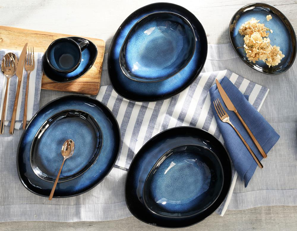 Naczynia wykończone reaktywnym szkliwem mogą być używane także do dekoracji wnętrza. Planujesz nowoczesną aranżację stołu? Poszukujesz ciekawych form i oryginalnych detali do dekoracji domu? Polecamy Dark Night - kolekcję naczyń ze szkliwionej kamionki.