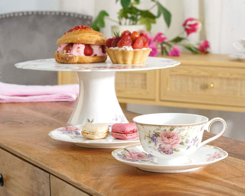 W serii dostępne są również kubki i filiżanki oraz talerzyki deserowe. Wszystkie naczynia z serii KATE są idealne na prezent. Zapakowane są w pojedyncze pudełka kartonowe, lakierowane, w kwiaty, z logo marki Villa Italia.