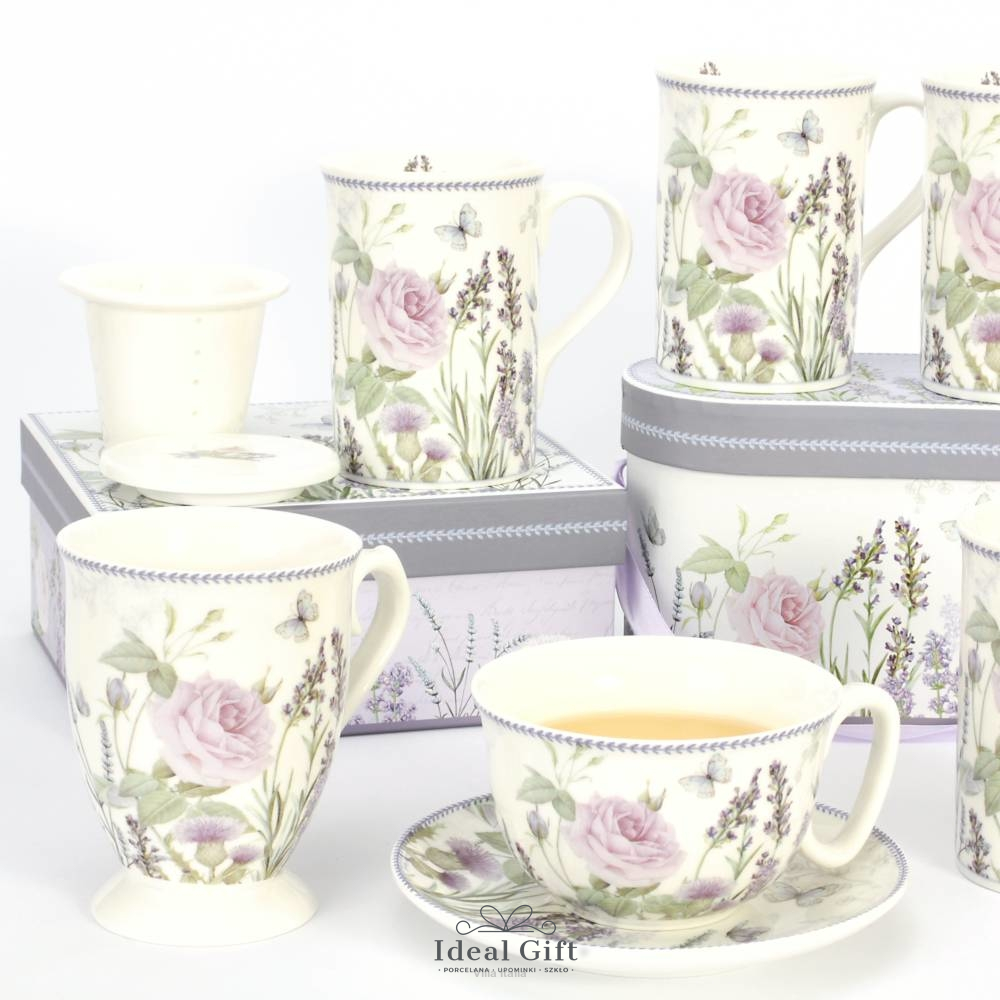 Filiżanka porcelanowa w kwiaty, w pudełku ozdobnym - LAVENDER