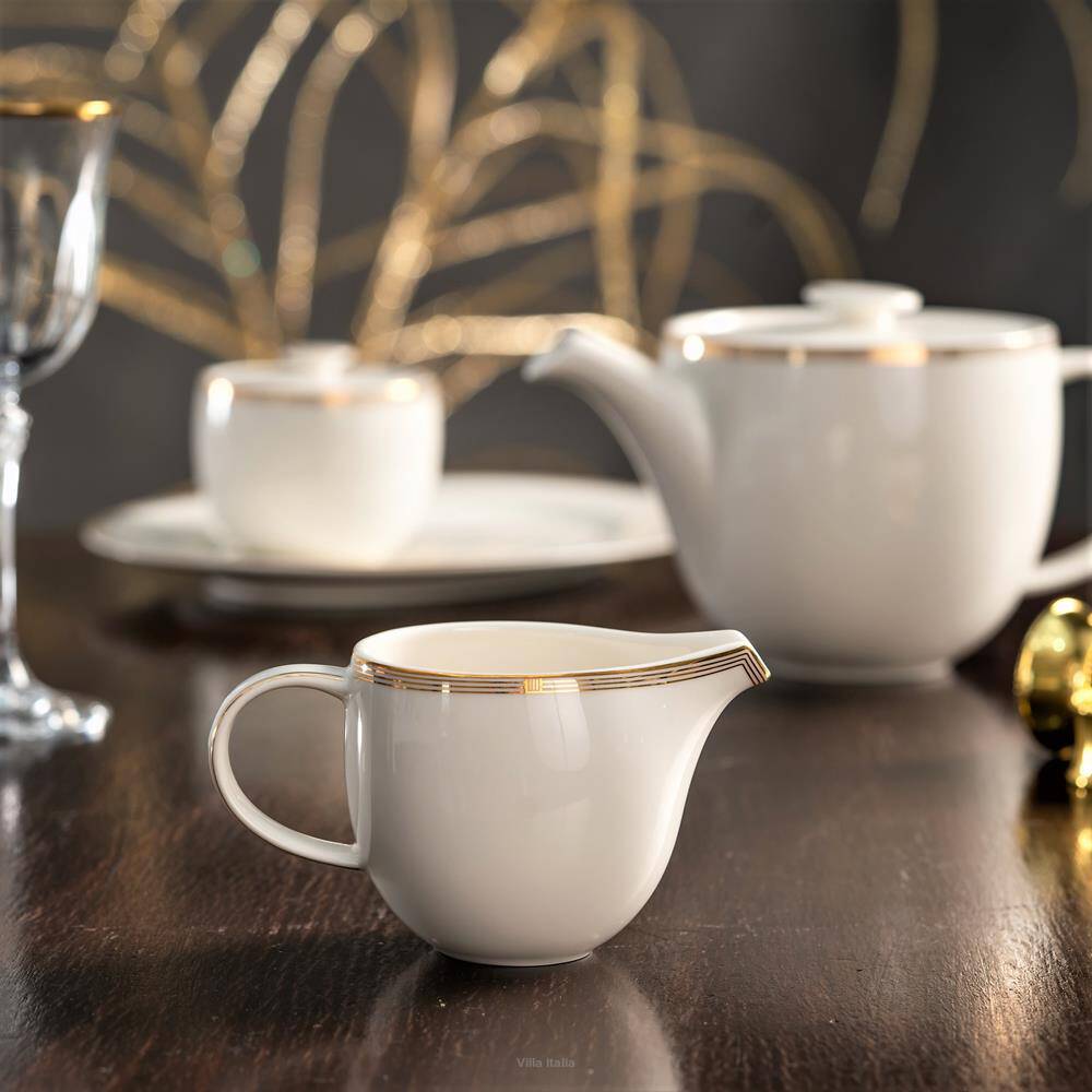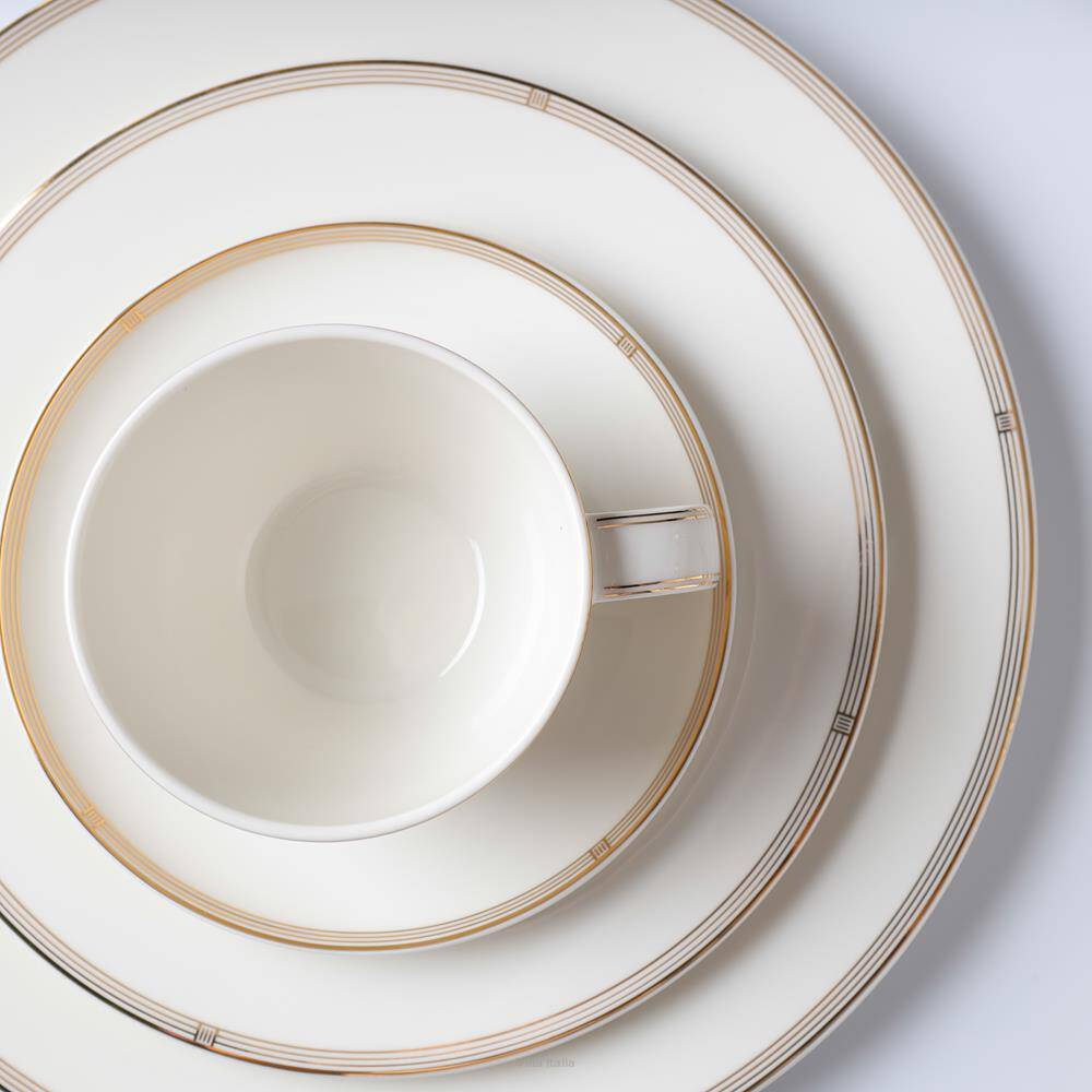 Serwis kawowy LIGURIA oczarowuje prostotą i estetyczną formą. Zaokrąglone kształty naczyń nadają kolekcji LIGURIA nowoczesnego charakteru. Subtelny, złoty wzór o geometrycznej formie, dodaje im lekkości i wykwintnego sznytu. Serwis do herbaty lub kawy wykonany został ze szlachetnej ceramiki (półporcelany) w odcieniu śmietankowej bieli. Komplet LIGURIA uświetni spotkania przy kawie lub herbacie, pomagając stworzyć wyjątkowy nastrój. Zestaw do kawy LIGURIA to również doskonała propozycja na prezent - na przykład z okazji ślubu lub jubileuszu.