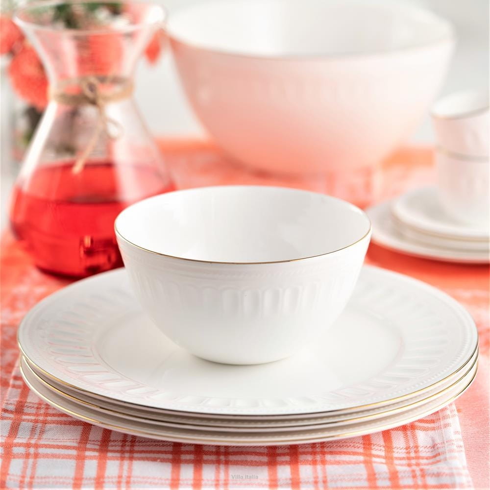 Porcelana Villa Italia - Mesyna Gold - Serwis obiadowy na 12 osób porcelanowy z wazą