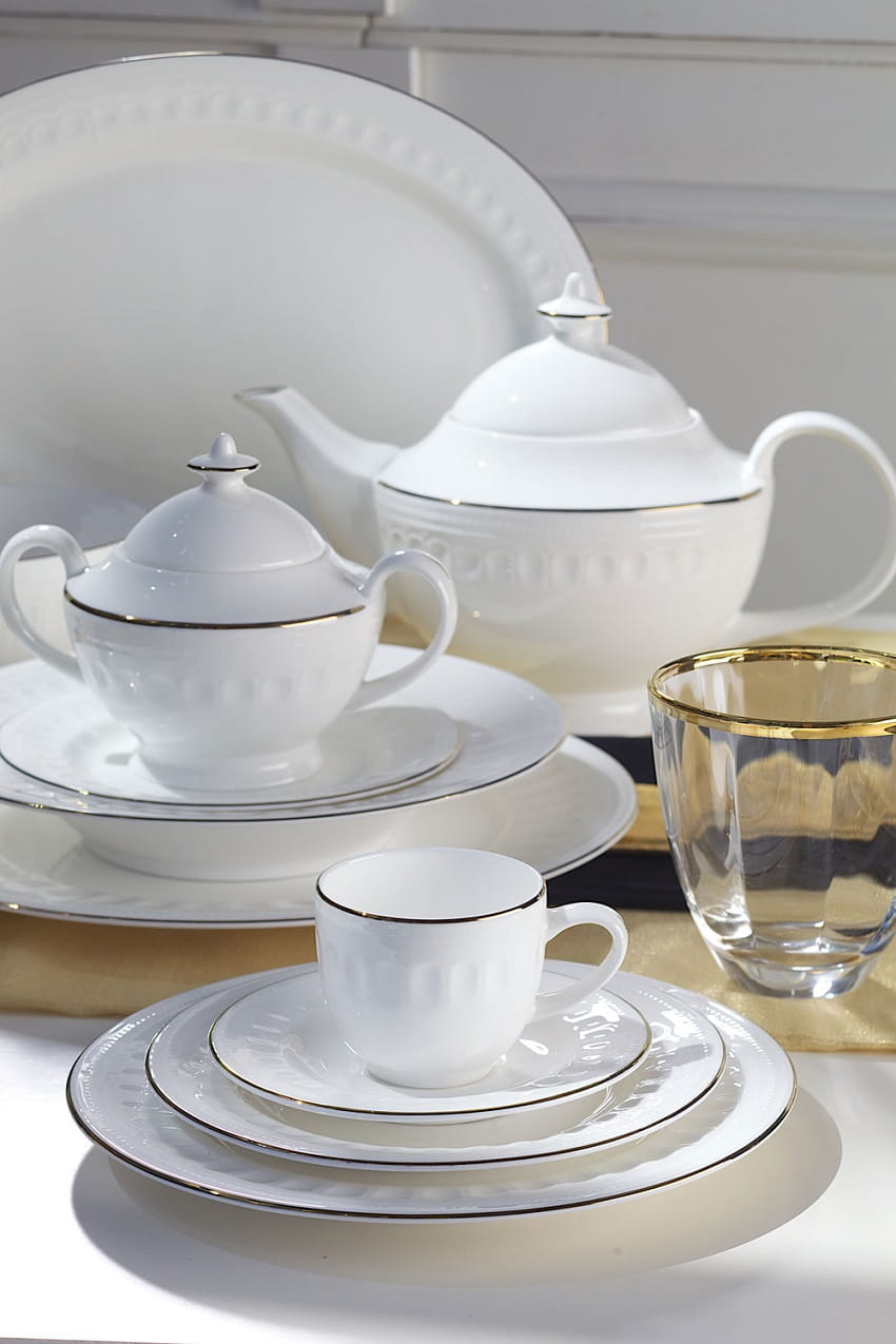 Elegancka cukiernica z linii Mesyna Gold, wykonana z cienkiej i delikatnej porcelany kostnej o ciepłym, mlecznym odcieniu bieli. Zachwyca swoją klasyczną formą, pełną lekkości i finezji. Cukiernicę i pozostałe elementy kolekcji wyróżnia zdobienie, delikatne wgłębienia i linie na obrzeżu, które nawiązują do antycznej, klasycznej stylistyki. Malowane ręcznie złote linie subtelnie podkreślają jej wyjątkowy charakter.