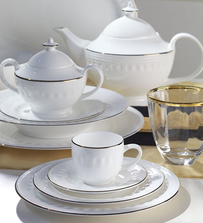 Dzbanek do herbaty i cała zastawa Mesyna Gold świetnie sprawdzi się w klasycznych wnętrzach, a każdemu spotkaniu przy stole nada niezwykłą oprawę.