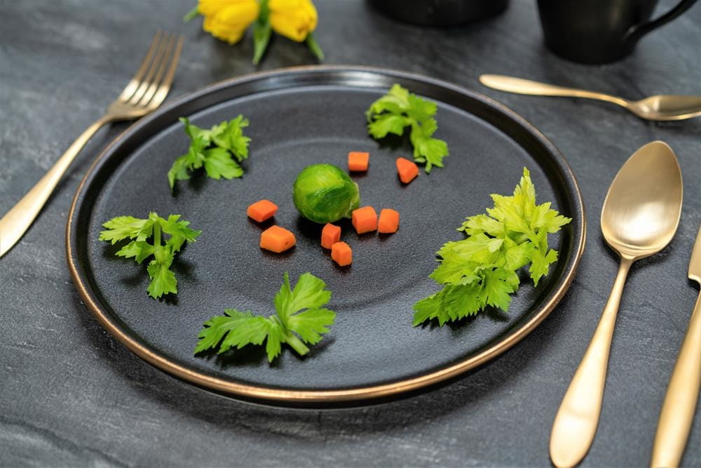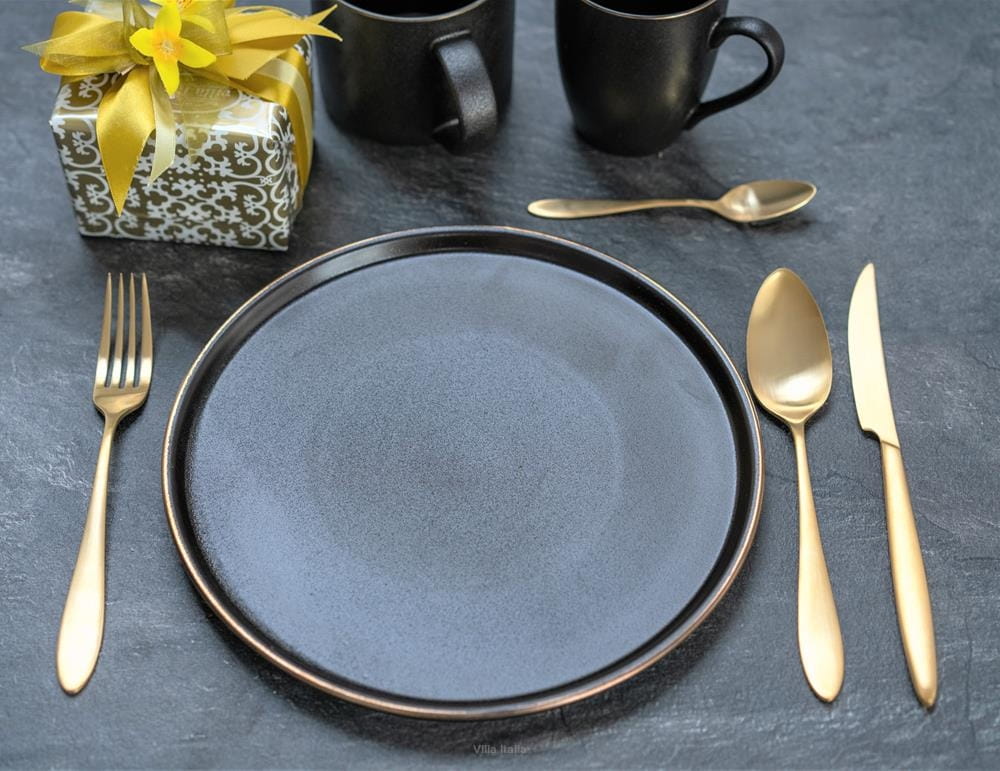 Kolekcja Otello black - połączenie nowoczesnego minimalizmu z oszczędną elegancją. Stonowana kolorystyka sprawia, że talerze będą zmieniać charakter w zależności od zastosowanych dodatków, co zostało zaprezentowane na naszych zdjęciach. Czerń i złoto to połączenie pełne elegancji, a zastosowanie czerwonych elementów dekoracyjnych będzie świetną aranżacją stołu na romantyczne spotkania dla zakochanych.