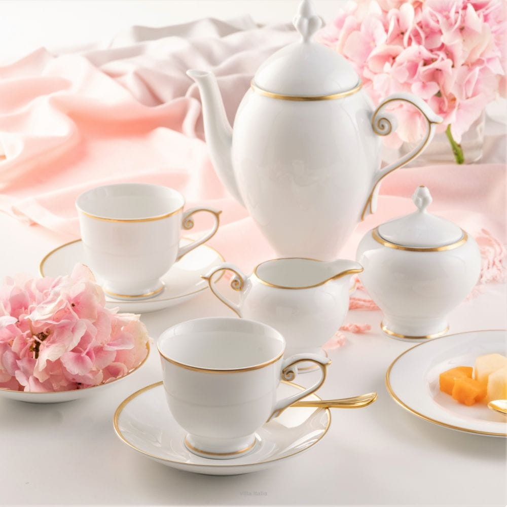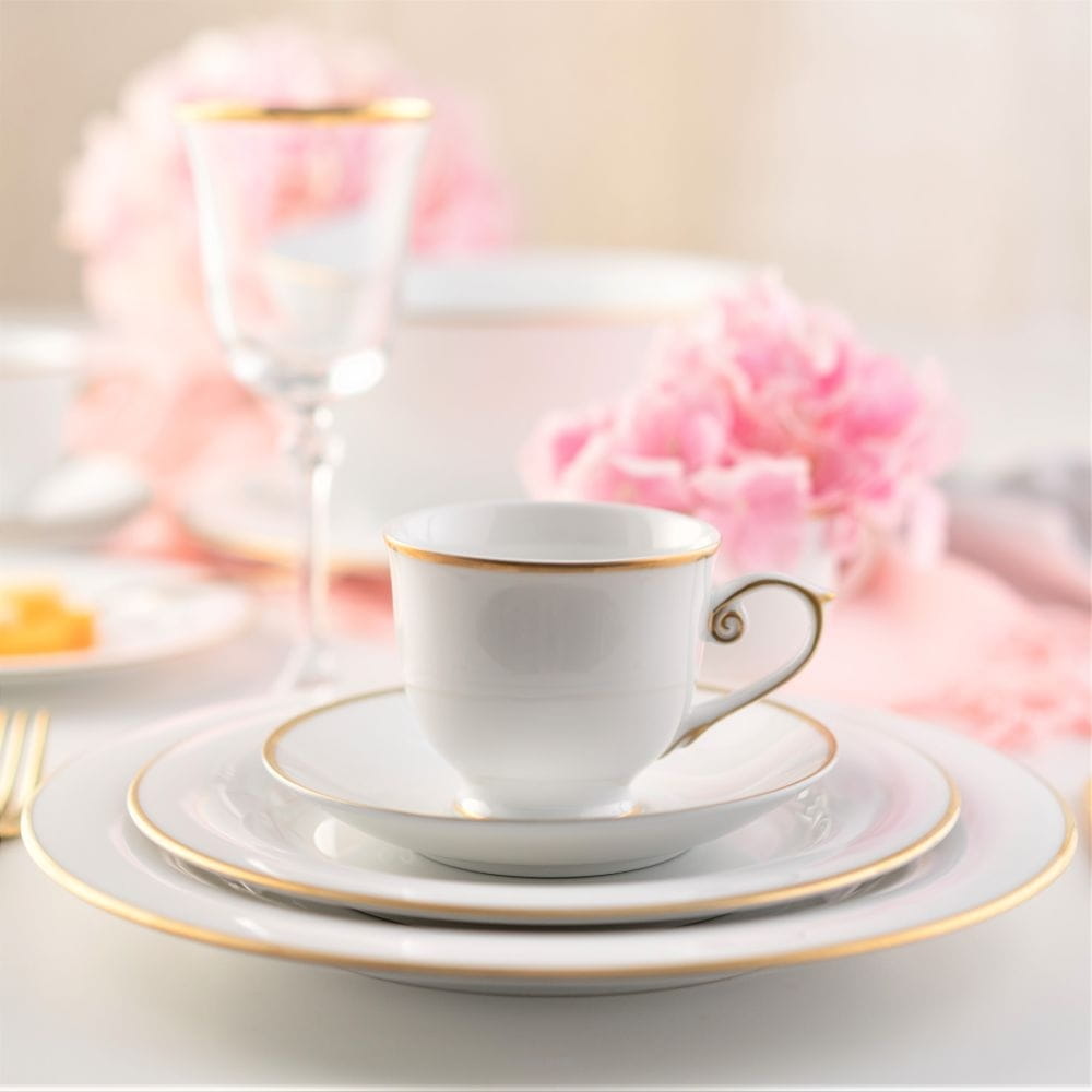 Filiżanka do kawy espresso z kolekcji Opera Gold to śnieżnobiała, elegancka porcelana w klasycznym fasonie. Filiżanki do kawy, filiżanki do herbaty i pozostałe elementy zastawy dekorowane są na obrzeżach, uchwytach, stopkach ręcznie malowaną linią matowego złota. Piękne stylizowane uchwyty filiżanek, czajnika, mlecznika, wazy podkreślają wyjątkowy charakter porcelany, stopki dodają niezwykłej lekkości. Filiżanki do espresso oraz cała kolekcja Opera Gold, to doskonała, ponadczasowa propozycja, która sprawdzi się przede wszystkim w klasycznych aranżacjach.