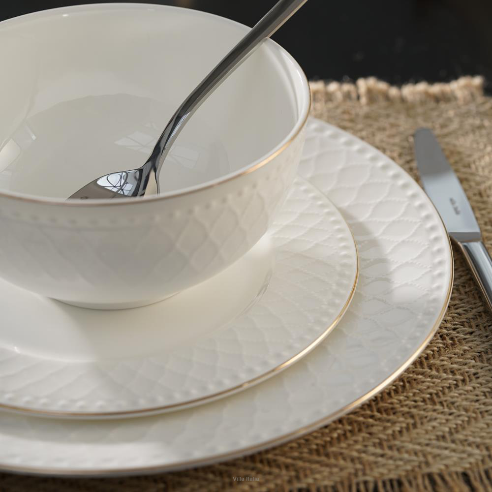 Uniwersalna miseczka Roma Gold będzie doskonała na mleko z muesli, zupę, porcję sałatki lub owoców. Zastawa Roma Gold będzie doskonale prezentowała się na stole zarówno podczas wystawnych przyjęć, jak i spotkań w gronie przyjaciół.