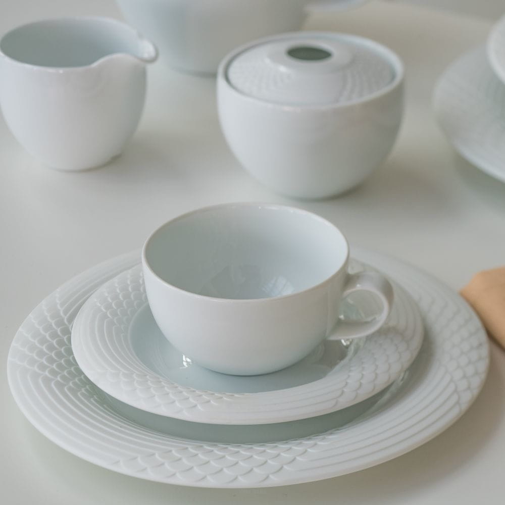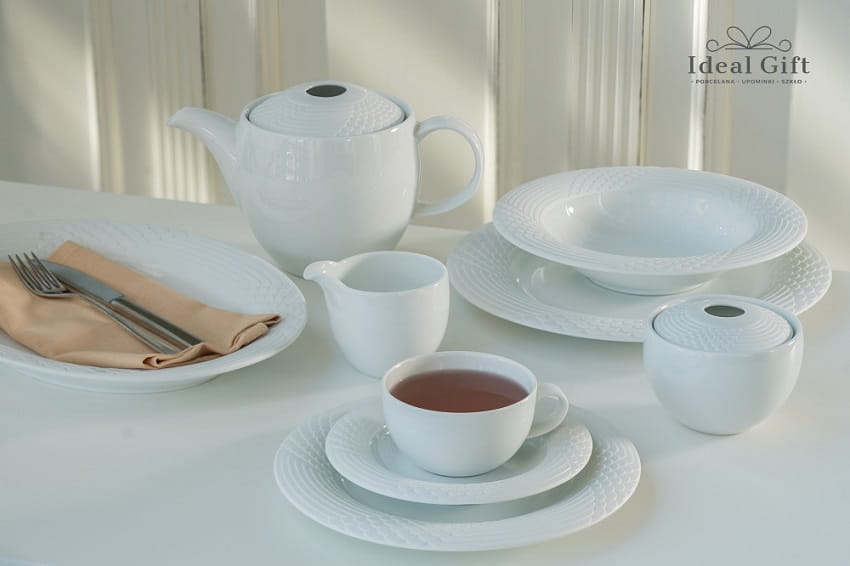 Scala - wykonany z wysokiej jakości porcelany, częściowo w wykończeniu matowym. Oryginalną ozdobą jest wypukły geometryczny relief inspirowany elementami starożytnych celtyckich wzorów, bogatych w detale. Brzegi porcelany w wykończeniu matowym nadają tej linii dodatkowego charakteru.