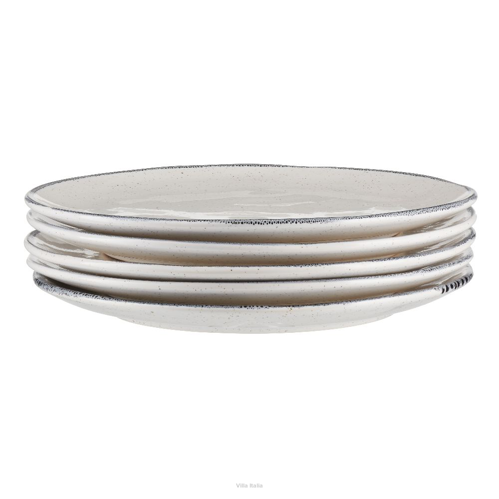 Talerze obiadowe z kolekcji Vanilla, które przypadną do gustu miłośnikom wyrobów rzemieślniczych. Mają delikatnie nierówne powierzchnie i krawędzie, co nadaje im naturalny i oryginalny wygląd. Naczynia Vanilla w ciepłym odcieniu bieli zdobi reaktywne szkliwo. Wszystkie elementy kolekcji charakteryzują nieregularne, czarno-szare obwódki oraz drobne, beżowe i czarne kropki.