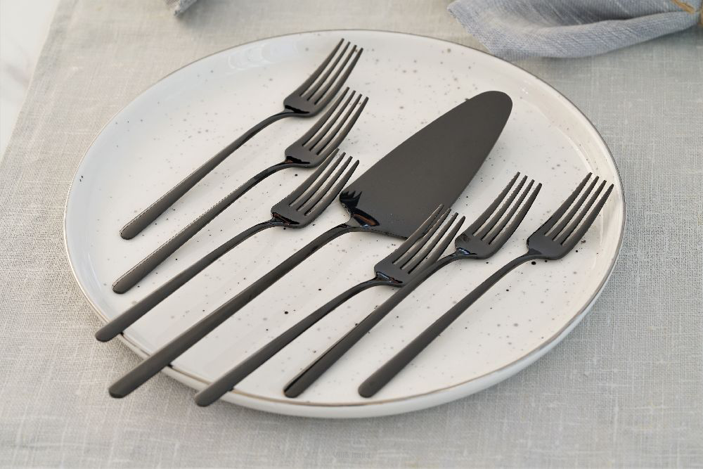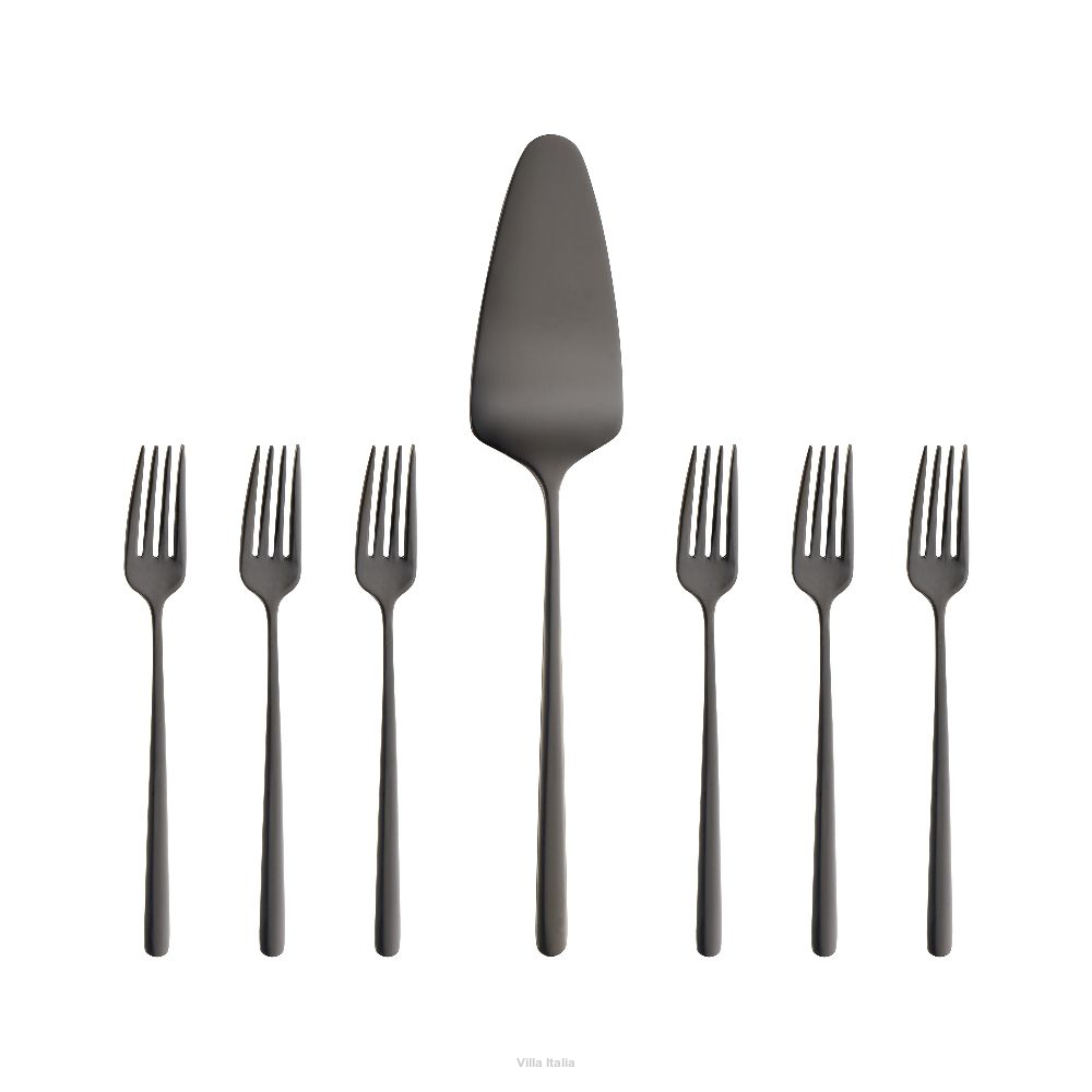 Sztućce Villa Italia - MARIZA BLACK - Zestaw widelczyków do ciasta z łopatką dla 6 osób