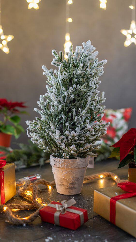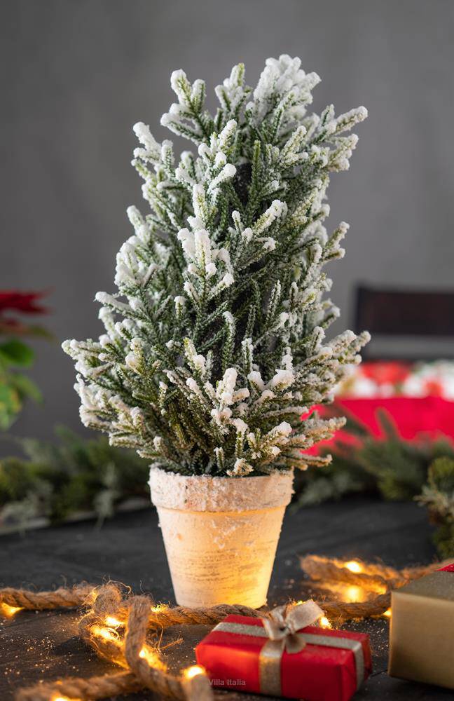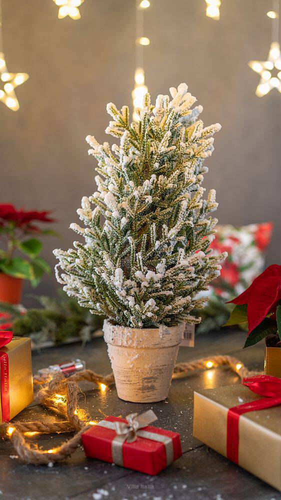 Mała choinka Villa Italia o wysokości 50 cm w doniczce, do złudzenia przypomina naturalną, ośnieżoną roślinę. Jest lekka, osadzona w białej doniczce muśniętej srebrem. Choinka ta jest doskonałą alternatywą dla żywego drzewka. To prosty sposób na wprowadzenie świątecznej atmosfery gdziekolwiek zechcesz. Choinka w białej doniczce wspaniale sprawdzi się w aranżacji wnętrza w skandynawskim stylu. To niezwykle wygodny i praktyczny model. Jest odpowiedni nawet do bardzo małego pomieszczenia.