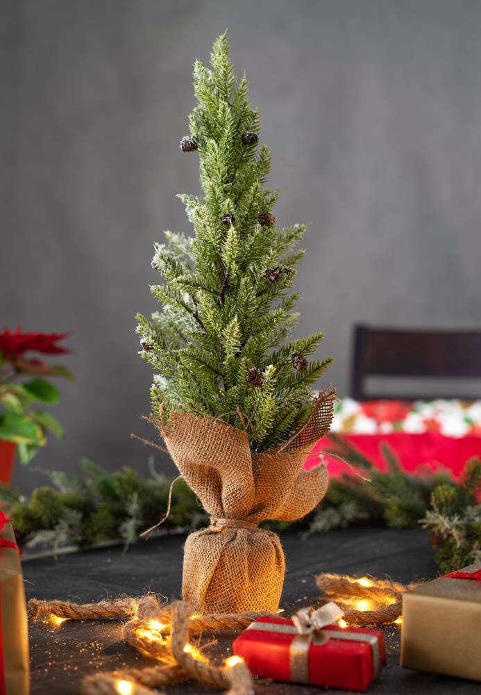 Mała choinka Villa Italia o wysokości 55 cm z szyszkami, do złudzenia przypomina naturalne, ośnieżone drzewko. Choinka ta jest doskonałą alternatywą dla żywej. To prosty sposób na wprowadzenie świątecznej atmosfery gdziekolwiek zechcesz. Choinka w worku jutowym, wspaniale sprawdzi się w aranżacji przestrzeni w rustykalnym lub skandynawskim stylu. To niezwykle wygodny i praktyczny model. Jest odpowiedni nawet do bardzo małego pomieszczenia.
