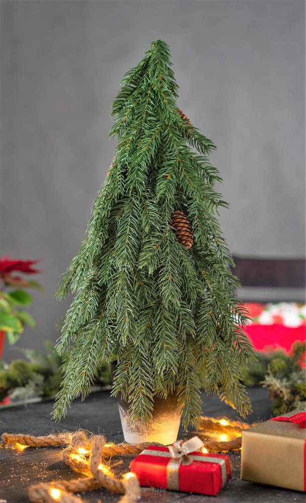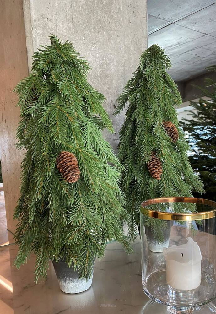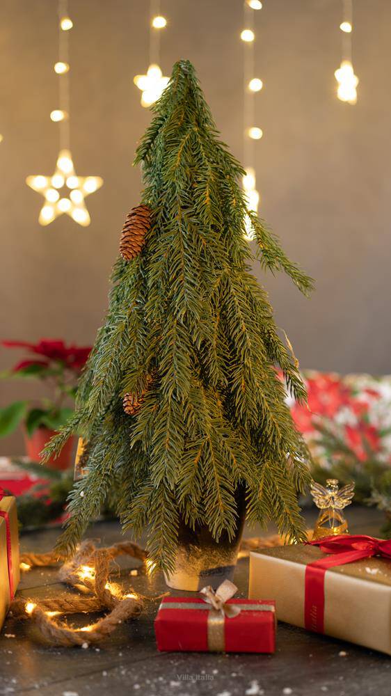 Idealną i uniwersalną dekoracją bożonarodzeniową jest choinka Villa Italia. Choinka jest wykonana z dbałością o detale, a jej gałązki do złudzenia przypominają naturalne. Osadzona jest w czarnej doniczce, a spośród jej gałązek wyłaniają się duże szyszki. To niezwykle wygodny i praktyczny model. Niewielkie rozmiary choinki (60 cm wysokości) pozwalają na umieszczenie jej nawet w bardzo małych pomieszczeniach. Gałązki można dowolnie modelować, tworząc tym samym własne, niepowtarzalne drzewko.